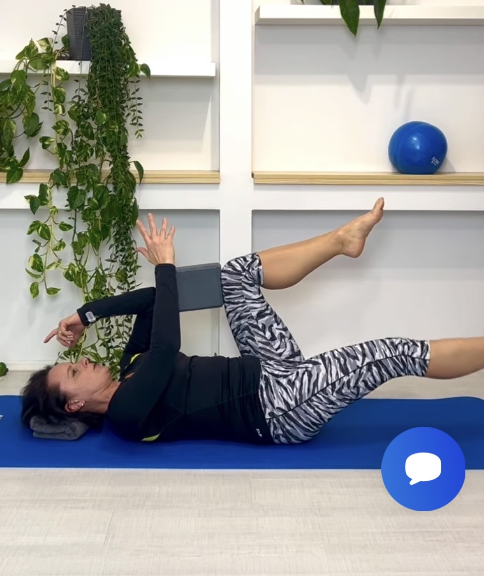 1. Lehněte si na záda, pokrčte kolena a dejte si pod hlavu kvůli vyrovnání páteře